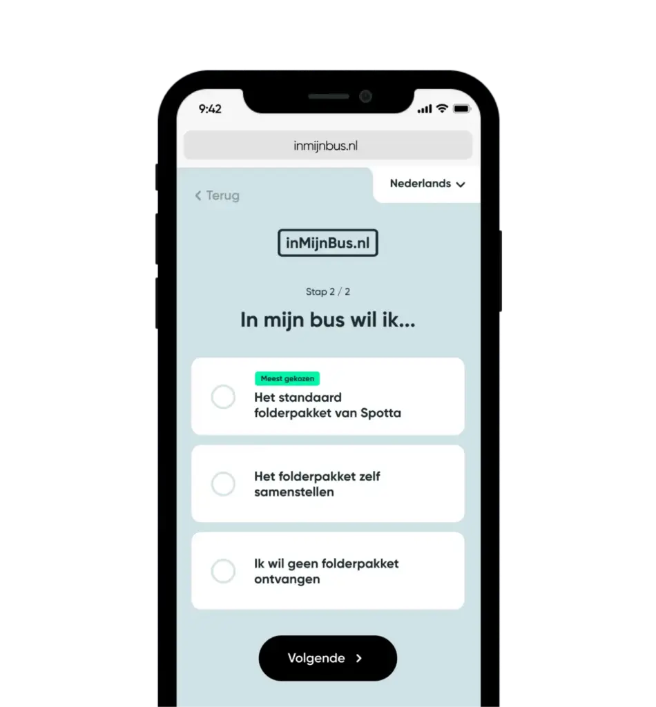 Vanaf de lancering op 1 juli 2023 staat er voor geen enkel huishouden JA of NEE ingesteld. Zodra uw wijk overgaat op InMijnBus informeren we de huishoudens die nu reclamefolders ontvangen zodat wij ervoor kunnen zorgen dat deze huishoudens het folderpakket van Spotta blijven ontvangen. Dat zal gebeuren op de huidige voorkeuren van de bekende JA of NEE sticker voor reclamefolders. Dus NEE blijft NEE. InMijnBus is bedoeld voor de JA’s.