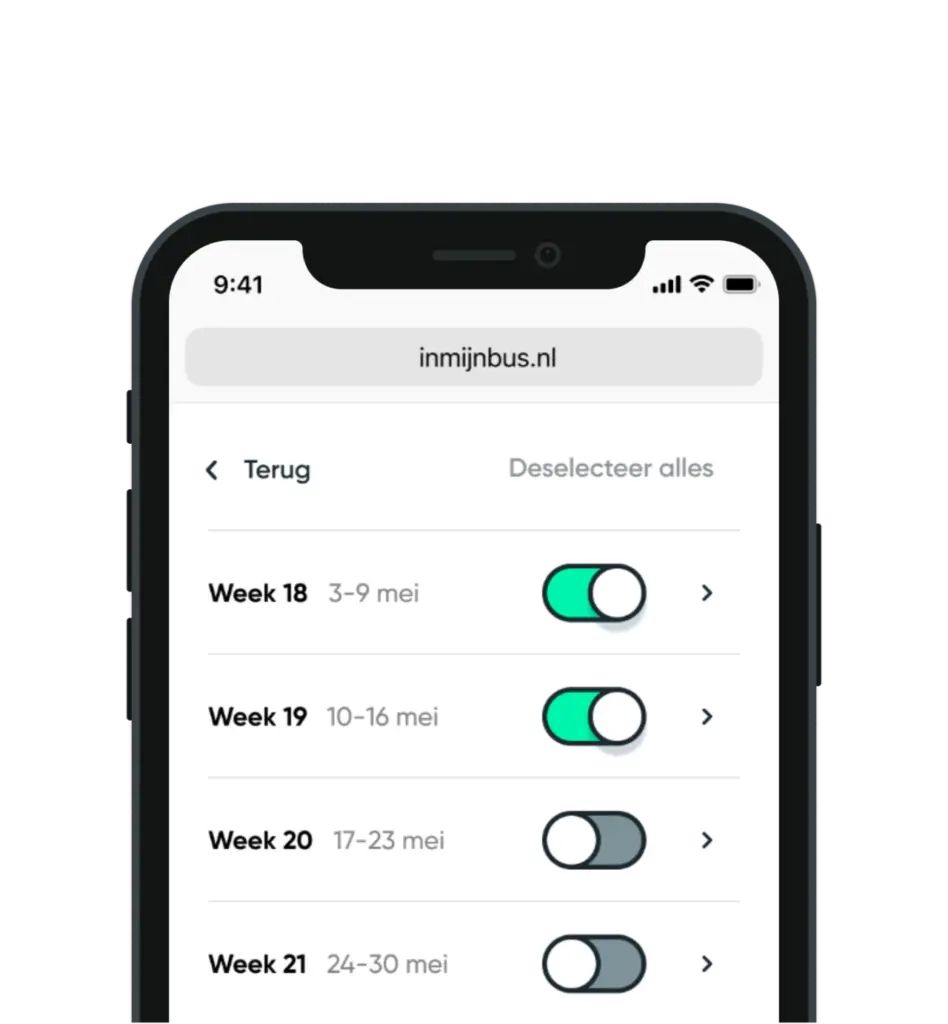 De naam van deze digitale sticker is InMijnBus en is alleen te bedienen via de website. InMijnBus geeft huishoudens de mogelijkheid om de voorkeur digitaal aan te passen. Je kan gemakkelijk je bezorgwensen op JA of NEE zetten, zo geef je aan om folders en/of weekbladen wel of juist niet te ontvangen. Daarnaast biedt het ook de mogelijkheid om tijdelijk je pakket te pauzeren wanneer je bijvoorbeeld met vakantie bent. Of om juist enkele weken aan te zetten wanneer je rond kerst wel folders wil ontvangen.